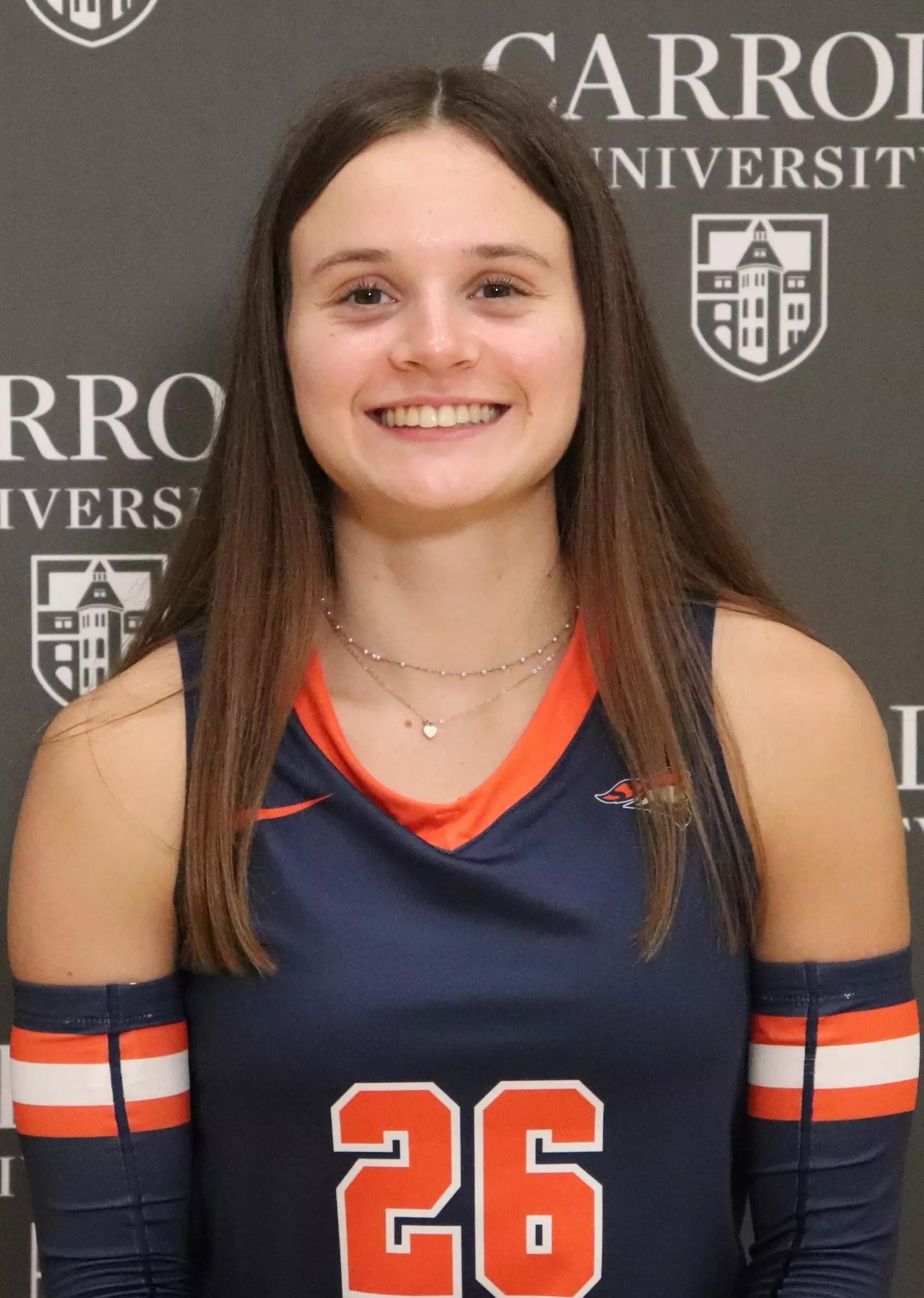 Just a few 2023 Stats at Carroll: Appeared in 75 sets in 23 matches while starting 21 matches…scored 33 points with 14 kills, 630 assists, 173 digs, and eight blocks…tallied 51 assists, ten digs, and one kill against Benedictine (IL) on 10/10/23…recorded 48 assists and 19 digs with two blocks against Concordia Wisconsin on 10/07/23